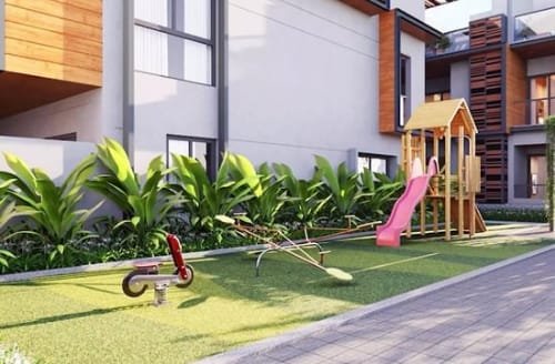 This luxury property in North Bangalore offers a resort-style swimming pool, yoga lawn, and meditation garden for your well-being. Host gatherings in the party hall or unwind at the outdoor lounge — ideal for modern family life. Stay fit with a fully equipped gym, sports court, and jogging track within the gated community. Safe, car-free pathways lead to a dedicated kids’ play zone, perfect for families with children.